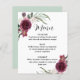 Burgundy Wine Sangria Forest mariage à thème vert fleuri menu avec élégant bouquet de fleurs de pivoine et feuilles d'eucalyptus verts. Veuillez me contacter pour toute aide sur la personnalisation ou si vous avez besoin d'un autre produit.