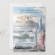 Un beau billet ou une invitation à la fête de mariage avec une peinture originale d'une bouteille de vin avec deux verres au bord de la plage. Idéal pour une réception uniquement ou une fête après le mariage. Très agréable pour une fête mariage à thème ou côtière.