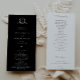Elégante verdure ornée crête, programme de mariage ventilateurs main. Mariage monogramme moderne et intemporel crête avec modèle de typographie minimaliste tendance.