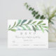 Une élégante carte de réponse mariage botanique bordée de vignes d'aquarelle bleu-vert. La couleur arrière - plan est affichée en blanc, mais peut être customisée pour correspondre à votre thème mariage.