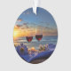 Un joli séjour de Noël ou toute occasion de dégustation de vin sur la plage. Deux verres de vin, avec fleurs et bougies au coucher du soleil. Une image assez romantique.