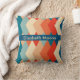 Das Design zeigt ein geometrisch inspiriert Muster, das an die 60er Jahre erinnert und eine fette Auswahl an länglichen Rautenformen in einer Palette von Marineblau, Korallenrot, aquamarin, Beige und Creme aufweist. Diese Diamanten sind symmetrisch angeordnet, ineinander greifend, wodurch sich durch Form und Farbkontrast ein visueller Effekt ergibt. Jede Rautenform ist solide mit einer dieser Farben gefüllt und schafft einen kühnen und lebendigen Kontrast, der sowohl auffällig als auch elegant ist. Die repetitive und eckige Natur des Musters verleiht ein Gefühl von Rhythmus und Bewegung, während die Farben ausgewählt werden, um Wärme und Tiefe zu wecken. Dieses Design würde jedem Interieur eine stilvolle und moderne Touch verleihen, was es zu einer hervorragenden Wahl für ein dekoratives Kissen für Ihre Zuhause machen würde.
