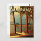 Dieses wunderschöne, moderne Vintage-Bild ist von Orange Beach in Alabama. Dieses Design an der Golfküste bietet einen herrlichen Blick auf das Wasser mit zwei Kajaks im Vordergrund zwischen den Waldbäumen und ist ein fantastisches Geschenk für jeden Alabamier oder Alabaman.