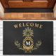 Vintag Ananas Mit Monogramm Personalisiert Doormat. Dieses elegante Design besticht durch eine Vintage Ananas in gedämpften Tönen auf schwarzem Hintergrund. Personalisieren Sie dieses individuelle Design mit Ihrem eigenen Willkommensgruß und Familie Monogram Initial.