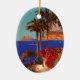 Französische und europäische Reisewerbung - Strand, Dorf, Dame, Hund, Bäume, blaues Meer und Himmelsbild