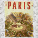 Vintage Darstellung des europäischen Reiseplakats oder Gepäcklabels aus Paris, Frankreich mit dem Triumphbogen, einem Triumphbogen in der von Napoleon im Jahr 1806 in Auftrag gegebenen Stadt der europäischen Hauptstadt Paris. Die Stadtstraßen mit Autos verlaufen vom zentralen Aussichtspunkt (Verkehrskreis oder Kreisverkehr) aus.