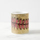 Ein Makrofoto eines alten gebrauchten Scuffed up grungy Vintag Baseball mit roter Naht. Perfektes Geschenk für den Baseballfreak oder Sportfanatiker. Foto von Travis L. Lagasse von Flowstone Graphics.