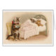 Eine Vintage Illustration von zwei Kätzchen, die in einem Bett vor dem Fallen schlafend als die Elternteilkatze snuggled sind, sitzt in einem Stuhl sie lesend eine Bedtimegeschichte. Es könnte entweder die Mutter oder die Vaterkatze sein, die an dieser nächtlichen Schlafenszeittradition teilnimmt. Diese Karte ist leeres Innere für Ihre eigene Mitteilung.