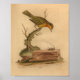 Vintage 1776 Vogelillustrierung aus Gleanings of Natural History. Brauner, gelber und roter Vogel, der einen Gricket anschaut.