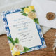 Fun Bridal Dusche Einladung mit einem blauen Mosaikrahmen mit Aquarell und Zitronen. Passen Sie Ihre Informationen an, damit die Braut sein kann. Matching Artikel im Adore Paper Co. Shop auf Zazzle erhältlich.