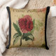 Vintages botanisches Kissen einer französischen Postkarte, die eine Rote Rose darstellt. Wunderschöne Ergänzung zur französischen Postkartensammlung. Editieren Sie, um Ihre eigene Dekoration couleurs!