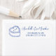 Vintages Cake Wedding Rücksendeadresse Label. Dieses charmante Rücksendelabel zeichnet sich durch eine einfache Vintage Kuchendarstellung auf der links Seite aus, mit sanft blauen Akzenten. Ihr Name erscheint in einem eleganten blauen handgeschriebenen Skript, während die Adresse in einem klassischen blauen Serif-Schriftart rechts gedruckt ist. Der saubere und zeitlose Stil schafft ein raffiniertes Aussehen, perfekt für Hochzeitsfeiern, Brautparty Dankeschön Noten oder besondere Anlass-Post. Alle Texte, Schriftart und Farbtöne können individuell an Ihren Stil angepasst werden.