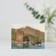 Postcard mit Vintagem Foto-Lithographie von Carrick Castle in Schottland aus dem Jahr 1895 fotografiert die Efeu bedeckten Ruinen eines mittelalterlichen Rotsandsteinturms mit Bergen im Hintergrund und einem See mit Booten im Vordergrund. Digital gereinigt, verbessert und künstlerisch gerendert, um Stift und Tinte mit Aquarellfarben zu ähneln. Das Turmhaus aus dem 15. Jahrhundert an der Westküste von Loch Goil in Argyll, Schottland, wurde 1307 von Robert the Bruce aus den Engländern zurückerobert. Mary, Königin der Schotten, besuchte 1563.
