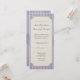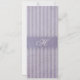 Dieses Design zeichnet sich durch einen staubigen, lila gestreiften Hintergrund aus, und einen schlichten, eleganten Rahmen, der wie ein Ticket aussieht und über einem dunkleren lila Band angebracht ist. Der Text wechselt zwischen den klassischen Garamond und Skript Hochzeit Schriftart, mit einem zusätzlichen Skript für Stil geblüht zwischen dem Hochzeitstag und Ort. Das Design hat ein gealtertes Gefühl, das Vintage Design zu ergänzen. Ein individuelles Monogramm, das zuerst in Creme eingeht, Krawatte die Rückseite der Einladungskarte in das Gesamtdesign. Diese Einladungen sind klassisch, aber nicht allzu formell und strahlen einen Vintagen, altmodischen Charme mit moderner Süße und Stil aus.