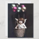 Eine Vintage Postkarte aus dem öffentlichen Bereich mit einem Kind, das als Cupid gekleidet ist und in einem Korb liegt, der von Ballons aufgehalten wird. Ideal für Valentinstag, Jubiläen oder einfach nur zu sagen! "Ich Liebe dich."