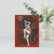 Diese Postkarte ist illustriert mit einem Vintagen Set der Teufel Lady vor einem roten Hintergrund mit einem gotischen Schädelmond und Sternen.