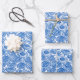 Dieses elegante, Vintage, monochrome Sonnenblumenmuster in Blau und Weiß eignet sich hervorragend für die Papierherstellung und Verpackung von Geschenken für den Alltag. Entworfen von © Tim Coffey.
