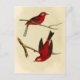 Schöne rote oder Vermillion Flycatcher illustriert auf einem cremefarbenen Hintergrund. Ein Vogel ist hoch und der andere sieht bereit, zu fliegen. In diesem Gemälde des Künstlers und amerikanischen Ornithologen John Cassin sehen Sie eine brillante rote Farbe und ein faszinierendes Detail. Gemalt während der Viktorianischen Ära, 1862