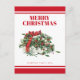 Ein schönes Design mit einem altmodischen Weihnachtsgeschenk, das die Worte "Frohe Weihnachten" an einer rot-weißen Grenze ergänzt. Ideal für Weihnachtsgeschenke und Dekoration.