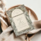 Dieses elegante und zeitlose Hochzeitsdesign besticht durch die reizvollen Blumenrahmen im Jugendstil in goldenen Tönen, gepaart mit sanften botanischen Akzenten auf einem üppig grünen Hintergrund. Eine ideale Wahl für Paare, die eine luxuriöse, Vintag inspirierte Feier mit einer Touch künstlerischer Eleganz suchen. Ideal für Hochzeiten im Garten, historische Stätten oder moderne klassische Angelegenheiten.
