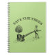 Vintage Abbildung eines Mannes mit einem jungen Baum in einem Topf + eine traditionelle Schrift: "Rett die Bäume" (nicht anpassbar). Individuell anpassbares Spiralnotebook n°2. Sie können einfach Text hinzufügen und Größe und Position des Bildes ändern, indem Sie auf die Schaltfläche Anpassen klicken.