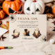 Feiern Sie den besonderen Tag Ihres kleinen mit einem wunderbar eleganten Halloween-Thema. Dieses Vintage gotische Design besticht durch schwarze Flora, Zauberrollen, einen Geist und antike Akzente. Personalisieren Sie Ihre Kinder mit Namen, Datum und Details für eine raffinierte "Two Spooky" Geburtstagsfeier.