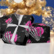 Whimsikal Vintag gotische Halloween Packpapier mit heißen rosa Rosen schmückend Skelettopfdruck.
