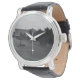 Uhr, Vintage Männeruhr mit schwarzem Lederarmband