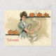 Halloween—Frau mit Bowl und Jack-o'-Lanterns "Hallowe'en. HBG." Auf der Rückseite gedruckt: "2215. Gedruckt in Deutschland." Eine Halloween-Postkarte, illustriert von H. B. Griggs. Andere Karten der Postkartenserie 2215 von Griggs zeigen Frauen, die eine Kerze und einen Spiegel halten, einen Apfel an einer Saite kochen oder eine Apfelschale über eine Schulter werfen. Jede dieser anderen Postkarten zeigt traditionelle Halloween-Wahrsagerei-Aktivitäten oder Spiele, mit denen die Identität eines zukünftigen Ehemanns aufgedeckt werden soll. Ich konnte jedoch nicht herausfinden, was die Frau auf dieser Postkarte tut. Sie scheint ihre Hand über eine Schüssel zu halten, während sich Dampf oder Rauch davon hebt, aber ich habe keine Beschreibungen ähnlicher Halloween-Praktiken entdeckt.