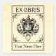 Ex libris Design mit einer heraltrockenen Abbildung einer Krone mit dekorativen Elementen. Einfach mit Ihrem Namen anpassen.
