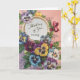 Eine Vintage GrußDualkartenverarbeitung, die "an Sie" innerhalb eines Bildes des Stickereibands heute denken sagt. Das Band umgebend, seien Sie schönes Stiefmütterchen in weißem, in Gelbem, in Lila und Lavendel. Die Mitteilung innerhalb der Karte "sendet gerade diese Anmerkung, um in der Touch zu behalten und verfehle mich zu sagen Sie überhaupt soviel."