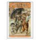 Eine Vintage Illustration einer Katzenfamilie heraus für eine Einkaufsreise beim Gehen in fallenden Schnee. Die Mutter- und Vaterkatzen bringen ihr Kätzchen als der Weg drei auf Hinterbeinen wie Menschen mit. Vaterkatze trägt einen schwarzen Regenschirm, um sie vom Schnee abzuschirmen und trägt einen gestreiften Zylinder. Die Mutterkatze trägt einen Hut und trägt einen Blumenstrauß der Blumen, die im Blumenpapier eingewickelt werden. Das Kätzchen trägt einen Hut und einen Schal. Das Wort "Einkaufen" erscheint an der Spitze der Illustration. Diese Karte ist leeres Innere für Ihre eigene Mitteilung.