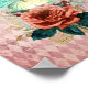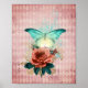 Der wunderschöne Collage-Plakatdruck im Digitalbereich "glühende" aquamarine Lunamotte aus Elfenbein mit Vintagem Blumenstrauß im Hintergrund des bedrückten rosa Harlequin