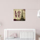 Vintages Eiffelturmbild in Paris, Frankreich. Im Hintergrund verblasst ein alter Buchstabe der französischen Liebe.