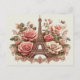 Ein romantisches Design mit dem Eiffelturm, reich verzierten Blumenmotiven, blühenden Rose und üppigen Weinreben, das die Schönheit und Eleganz der Pariser Gärten symbolisiert.