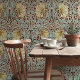 Stellen Sie Ihrer Zuhause eine Touch zeitloser Eleganz mit diesem exquisiten Vintagen Tapete vor, inspiriert durch die aufwändigen Designs von William Morris. Dieses atemberaubende Muster besticht durch majestätische Blume und zarte Blüten, die mit üppig grünen Blätter und Weinreben verwoben sind. Die Farbpalette umfasst weiche pastellfarbene Grüntöne, helle Gelbtöne und gedämpfte Goldtöne, die alle wunderschön kontrastiert mit einem weinroten Hintergrund. Dieses elegante und elegante Interieur verbindet klassischen Charme mit modernem Stil.