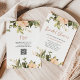 Diese schöne Brautdusche lädt mit Vintagen, pfirsichfarbenen Blume, viel Grün, grünen Blätter und Ästen zum Verweilen ein. Sie schmücken einen schlichten, weißen Hintergrund mit moderner Schriftzypografie. Auf der Rückseite der Karte befindet sich ein Platz für einen scannbaren QR-Code, sodass die Gäste leicht uAwg machen können. Die perfekte Art, Freunde und Familie zur bevorstehenden Hochzeit der Braut zu laden!