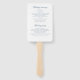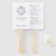 Barocke Hochzeitsfans mit verziertem blauen Wappen bieten ein luxuriöses und funktionales Detail für elegante Zeremonien. Die Vorderseite ist mit einem Rokoko-inspiriert Monogramm-Wappen mit aufwändigen Scrollarbeiten und Blumenverzierungen ausgestattet, was einen bemerkenswerten ersten Eindruck hinterlässt, der von der Eleganz der Regentschaft geprägt ist. Unten zeigen klassische Serifen und Schriftart fließender Schriften die Namen des Paares und das Hochzeitsdatum in leuchtendem Gold. Die Rückseite organisiert die Zeremonie und die Details der Hochzeitsfeier in einem sauberen, leicht lesbaren Layout, alle in passendem goldenen Text. Der dekorative Ventilator ist perfekt für Hochzeiten bei warmem Wetter und verbindet aristokratischen Charme mit praktischer Eleganz für ein zeitloses, hoteleigenes Ambiente.