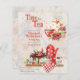 Schöne Vintage Retro Rot und Weiß Punkt themed Einladungen. Bearbeitung für alle Veranstaltungen, einschließlich Geburtstag, Baby oder Brautparty, Ruhestand, Muttertag oder mehr.
