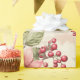 Dieses Vintage Verpackungspapier zeichnet sich durch eine wunderschöne, weiße und rosa Blume aus, die mit roten Beeren und grünen Pflanzen geschmückt ist.
