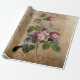 Elegantes Verpackungspapier, zum einer Touch der Klasse irgendeinem Geschenk hinzuzufügen. Vintage Art, in einem dunklen Goldhintergrund, mit stilvollem Skript und weiche lila Rosen.
