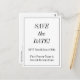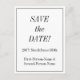 An der Vorderseite dieses Vintagen und klassischen Look rett-the-date Postcard Designs steht die Meldung "Save the Date!", zusammen mit kundenspezifischen Namen, Datum und Veranstaltungsdetails. Postkarten wie diese können verwendet werden, um potenzielle Gäste über eine bevorstehende Hochzeitsfeier oder eine andere Veranstaltung lassen.
