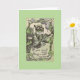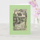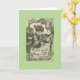 Eine Vintage Abbildung eines Frosches, der mit einem Liederbuch auf seinem Schoß sitzt. Seine Augen werden nach oben gedreht und er hebt einen Arm in die Luft, während er mit großer Leidenschaft laut singt. Er ist von einer Grenze mit Lilienpads umgeben. Der Vers auf der Vorderseite der Karte sagt: "Wenn du singen musst, singe ein Solo - so niedrig!" Die Innenseite der Karte ist leer für Ihre eigene Nachricht.