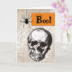 Eine Vintag inspirierte Halloweenkarte mit einem von der Hand gezeichnet Schädel, fett orangefarbener Typografie "Boo!" und einem gruseligen Spinnenakzent. Ideal für gotische Halloween-Partys, göttliche Gruß oder eine Touch Spuk Charmes an Freunde und Familie zu senden. Das Design verbindet Vintage Ephemeriden mit gotischen Details, was es ideal für Liebhaber von Retro Halloween Stil.
