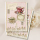CottageCore-Ästhetik High Tea-Decodiapapier mit Aquarell bemalten antiken Goldteacups mit Blume, Scrollwork, goldenen Teelöffeln, französischer Einladung und eleganten Ephemerien. Ein weich rosa Spitzen Hintergrund Set den Tisch sanft. Dieses Design wurde von Audrey Jeanne Roberts, einer international anerkannten Künstlerin und Designerin, grafisch entworfen und urheberrechtlich geschützt.