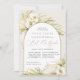 Tropische Schick-Fledermaus Mitzvah Einladungen in einer verführerischen neutralen Farbpalette mit einem zentralen Gewölbe, das Ihre Zeremonie und Feier oder Party Details trägt, mit blassgrünen Aquarellpalmen, beachy Inselblättern, weißen Orchideen, boho getrockneten Botanicals und Pampas Gras.