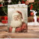 Mit dieser nostalgischen Weihnachtskarte mit einem Vintagen Weihnachtsmann, stehend in einer Schneeszene, können Sie sich gemütliche Urlaubswünsche gönnen. Die Worte Frohe Weihnachten erscheinen in elegantem goldenen Skript an der Spitze, sodass es eine zeitlose Art ist, feierlichen Beifall mit Freunden, Familie und Mitarbeitern zu teilen. Ideal für alle, die traditionelle Urlaubsbilder mit einem gemütlichen Retro-Ambiente Lieben.