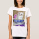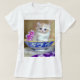 T - Shirt mit einem flauschig weißen Kätzchen! Das blaue mit Augen Kätzchen sitzt in einer blauen Schüssel mit rosa Blume. Eine lila geblümte Decke ist vorne drapiert. Ein wunderbares Geschenk für Katzenliebhaber und Viktorianische Kunstliebhaber!