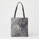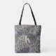 William Morris Marigold, Vintages Monotonmuster-Design aus dem Jahr 1875, das eine große Blume darstellt, umgeben von Blätter und kleineren Blume. Das Jugendstil- und Kunsthandwerksmuster war eines von Morris' ausgewählten Designs, die sowohl als Stofftextilien als auch als Tapeten hergestellt wurden. Die Taschenfläche wird mit einem großen, umrissenen Monogramm hervorgehoben. Diese digitale Interpretation wird in indigoblau und in Leinentönen angeboten. Weitere traditionelle Farbvarianten sind in unserem Studio erhältlich. Erhalten Sie Hilfe bei der Personalisierung oder für Anpassungen, die Ihren Bedürfnissen entsprechen. Wir sind hier, um zu helfen!