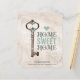 Ankündigung, dass Sie mit dieser eleganten, sich bewegenden Karte auf Ihre neue Zuhause umgezogen sind. Dieses schicke Design besticht durch einen Vintagen Skelettschlüssel, der von einem Edelstein auf einem Hintergrund aus einem Damast dekoriert wurde. Auf der Rückseite der Karte befindet sich ein passender Hintergrund mit einer Nachricht, die Sie personalisieren können. Ideal für Neuvermählte und Familien. Entworfen von Susan Coffey.